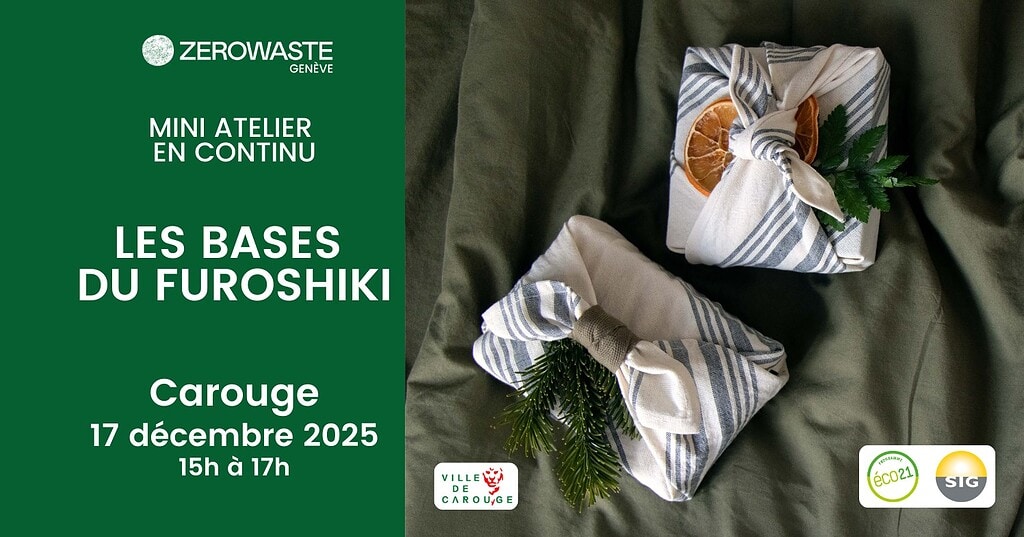 Rejoignez ce mini-atelier gratuit et en quelques minutes, initiez-vous au furoshiki, une technique japonaise d’emballage réutilisable. Adieu le papier cadeau jetable, bonjour les solutions durables !